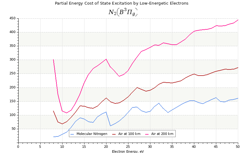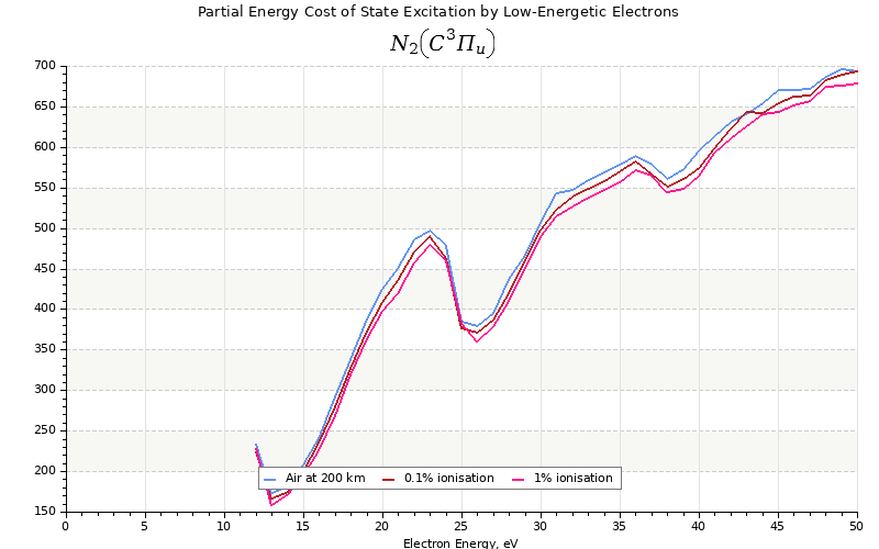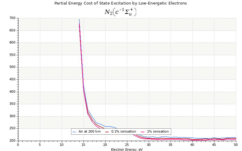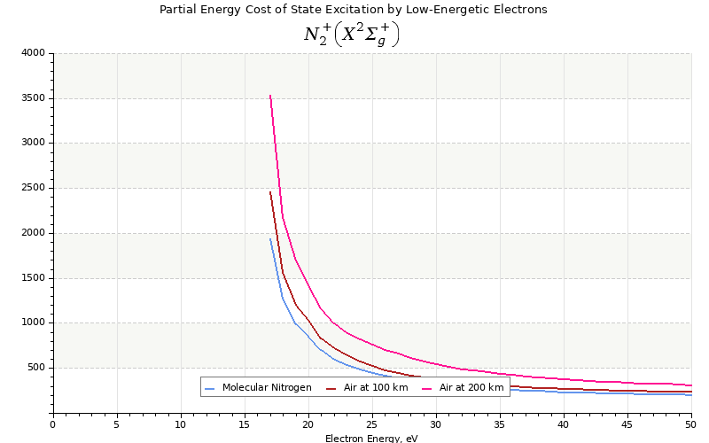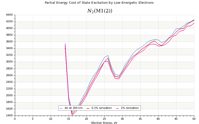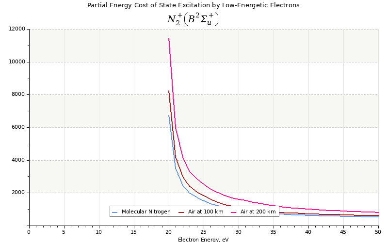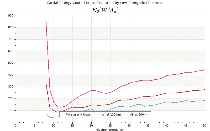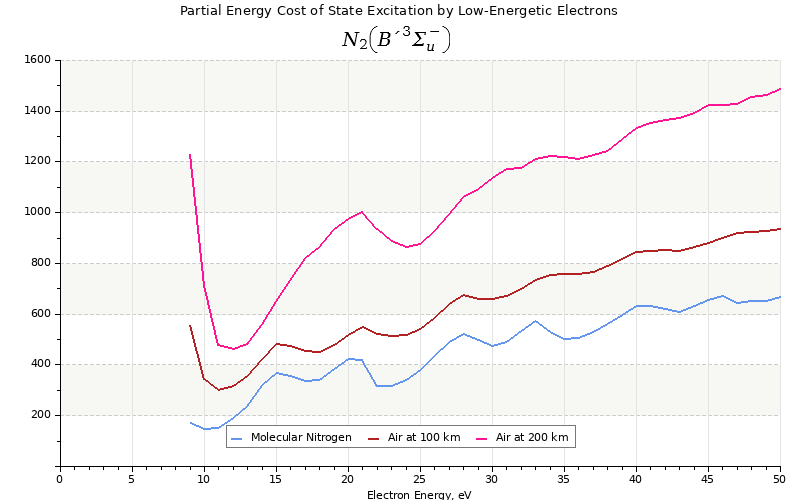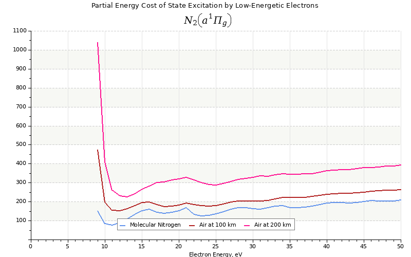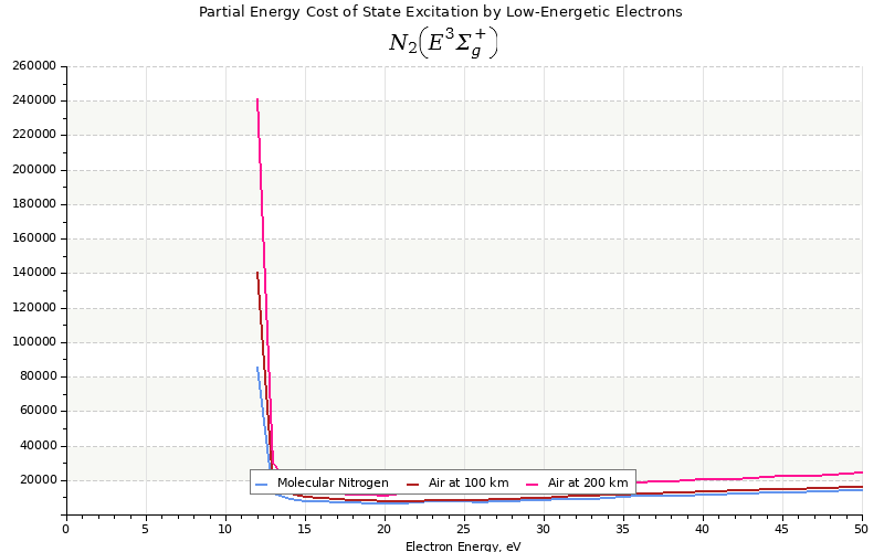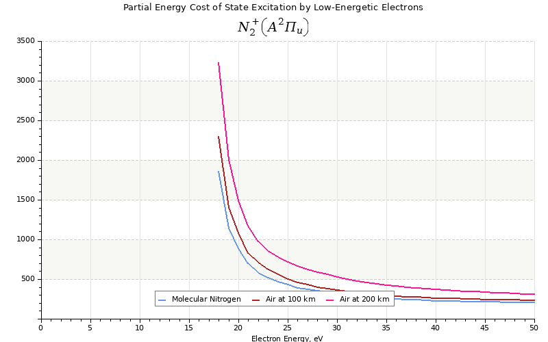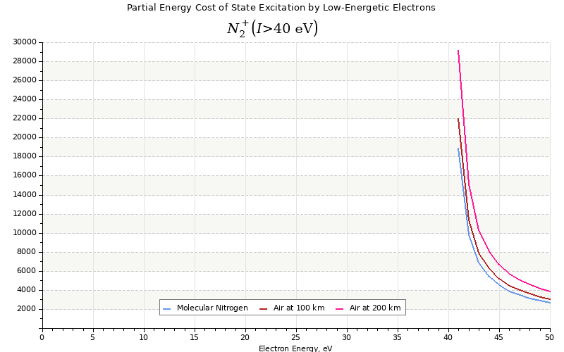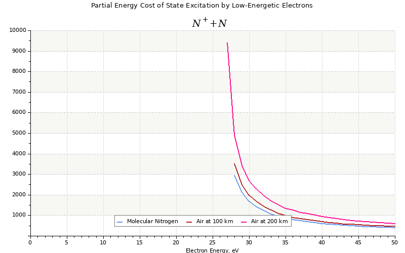 The costs for initial electron energies 100 eV, 1 keV and 10 keV were calculated for air at ~120 km (mixture of 70% N2, 10% O2 and 20% O).