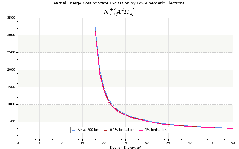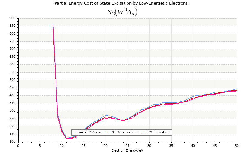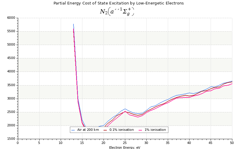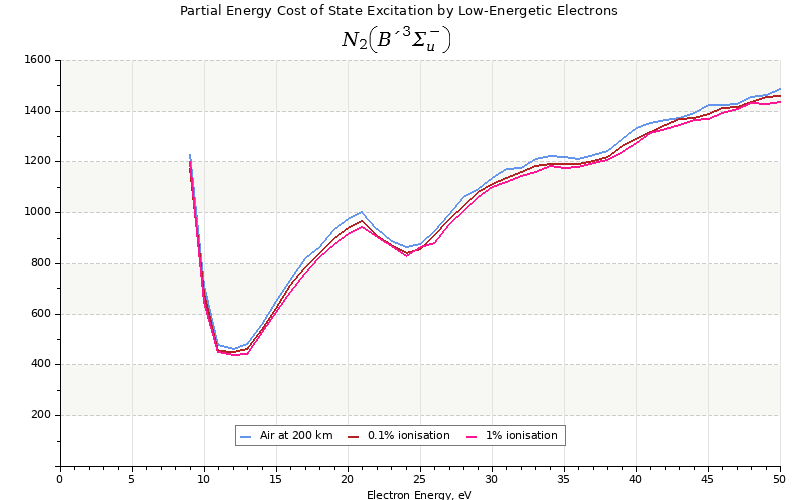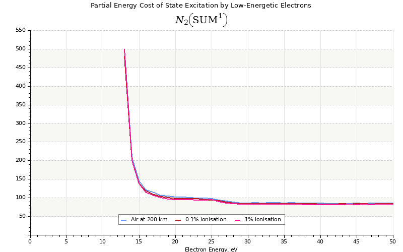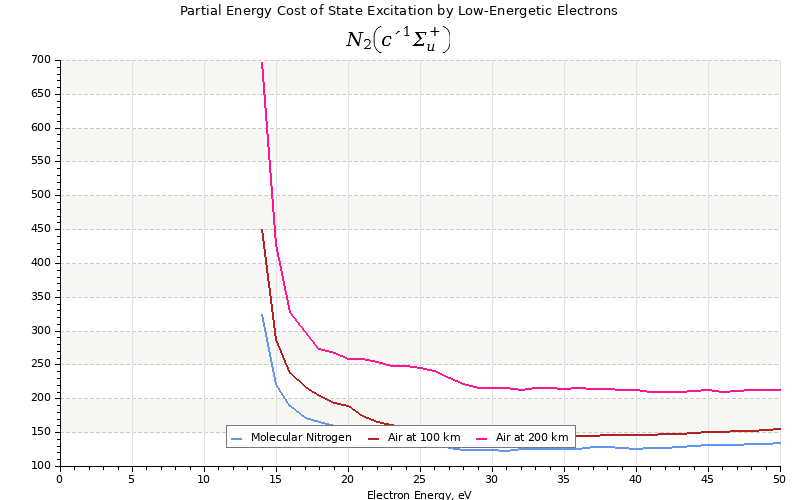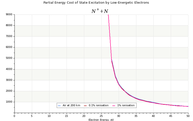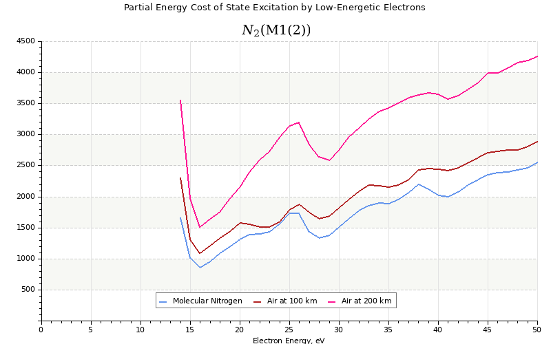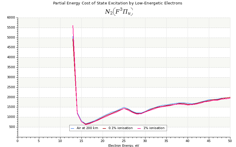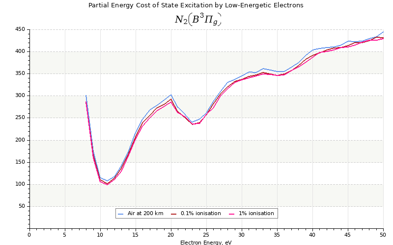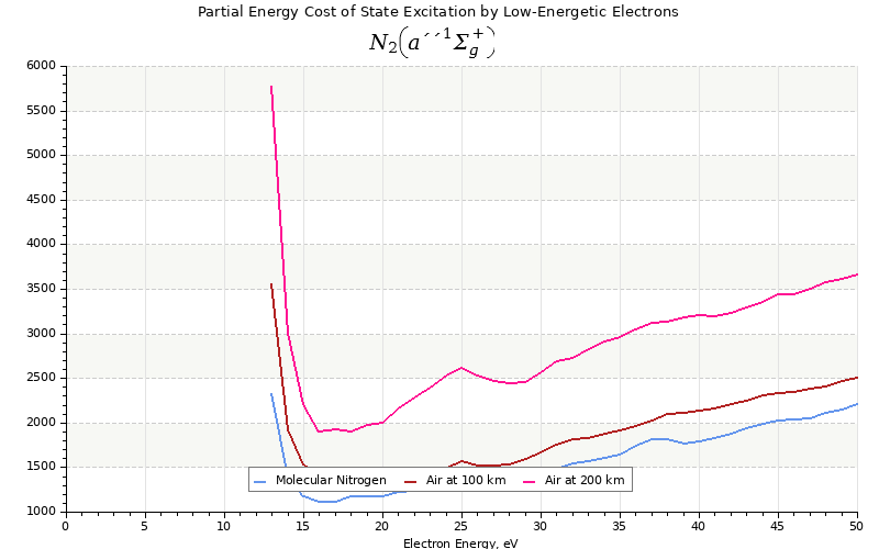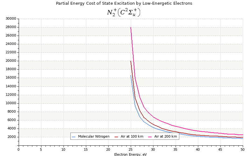 The costs for initial electron energies 100 eV, 1 keV and 10 keV were calculated for air at ~120 km (mixture of 70% N2, 10% O2 and 20% O).