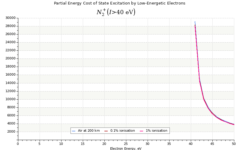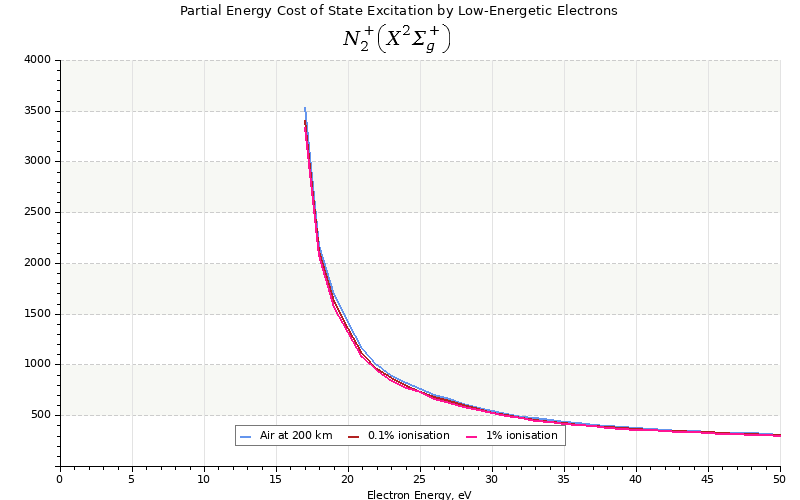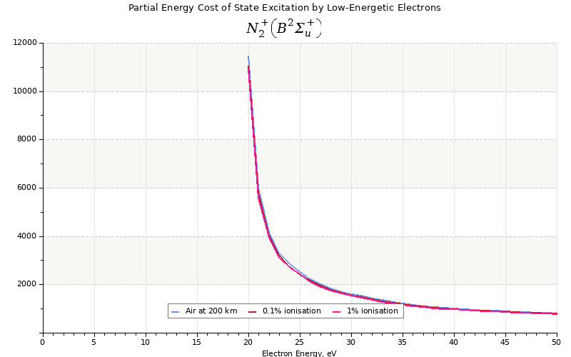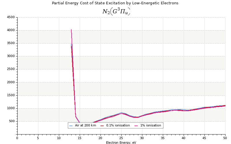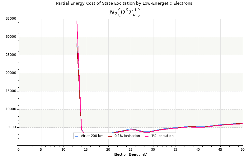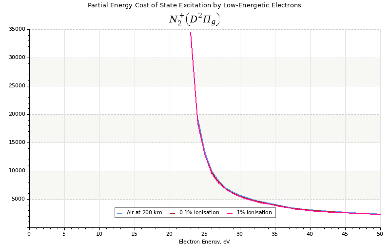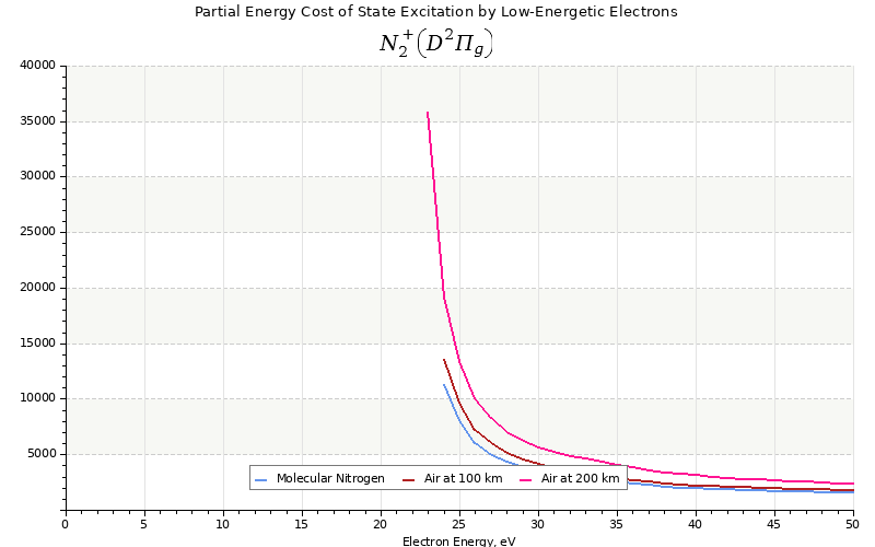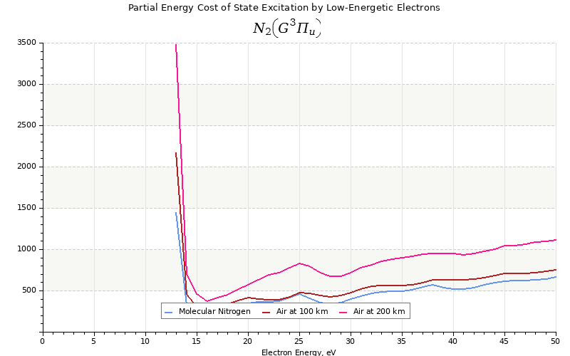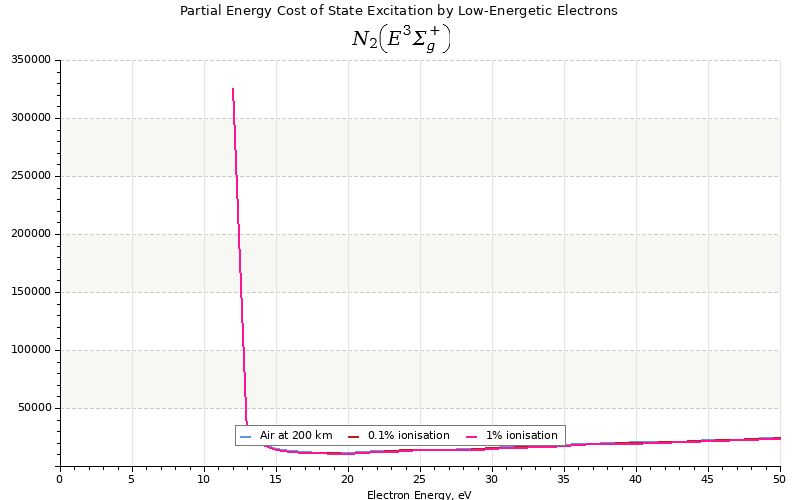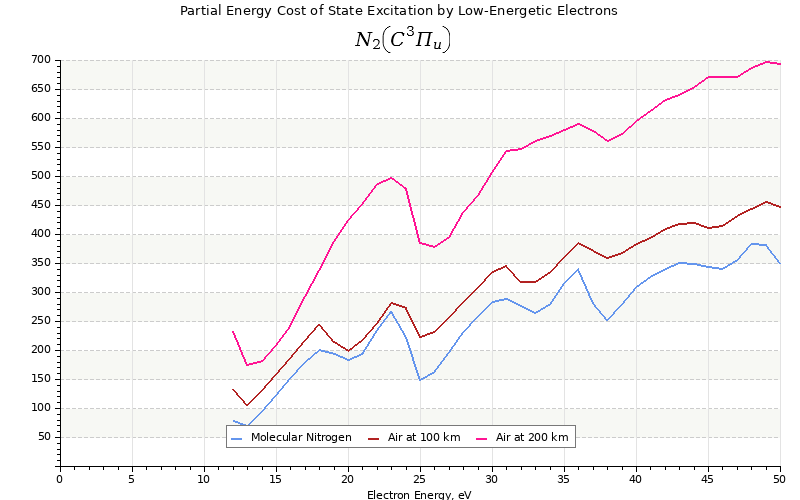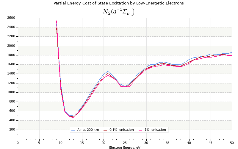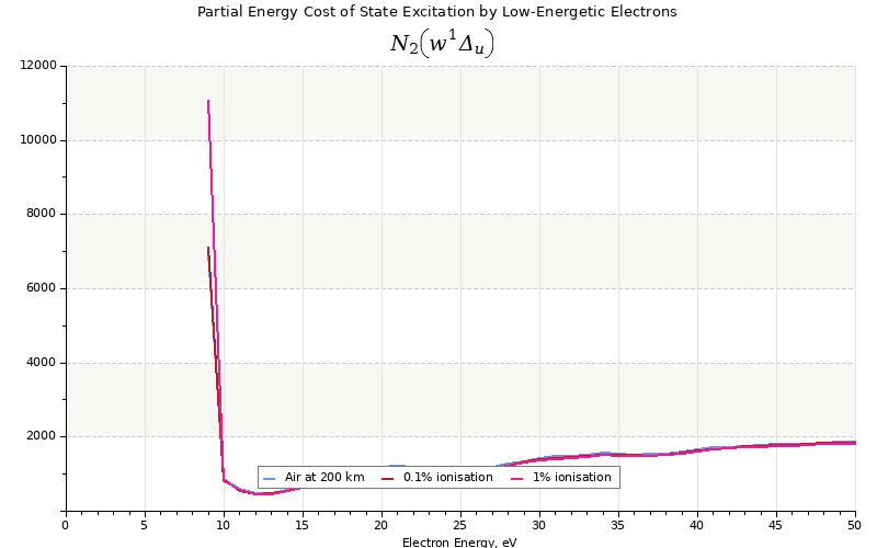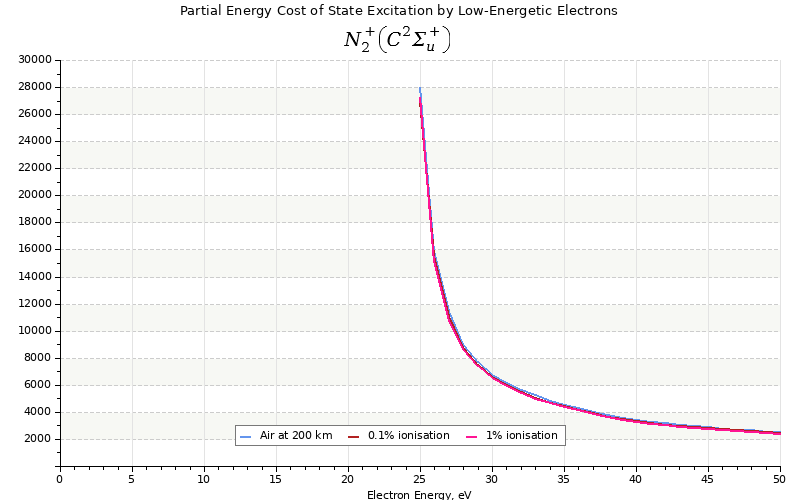 The costs for initial electron energies 100 eV, 1 keV and 10 keV were calculated for air at ~120 km (mixture of 70% N2, 10% O2 and 20% O).